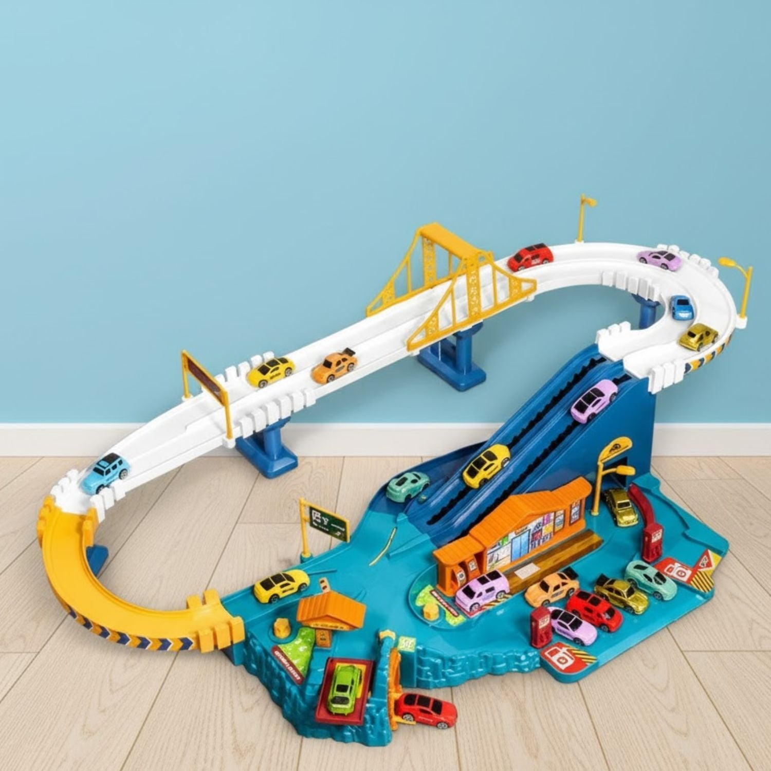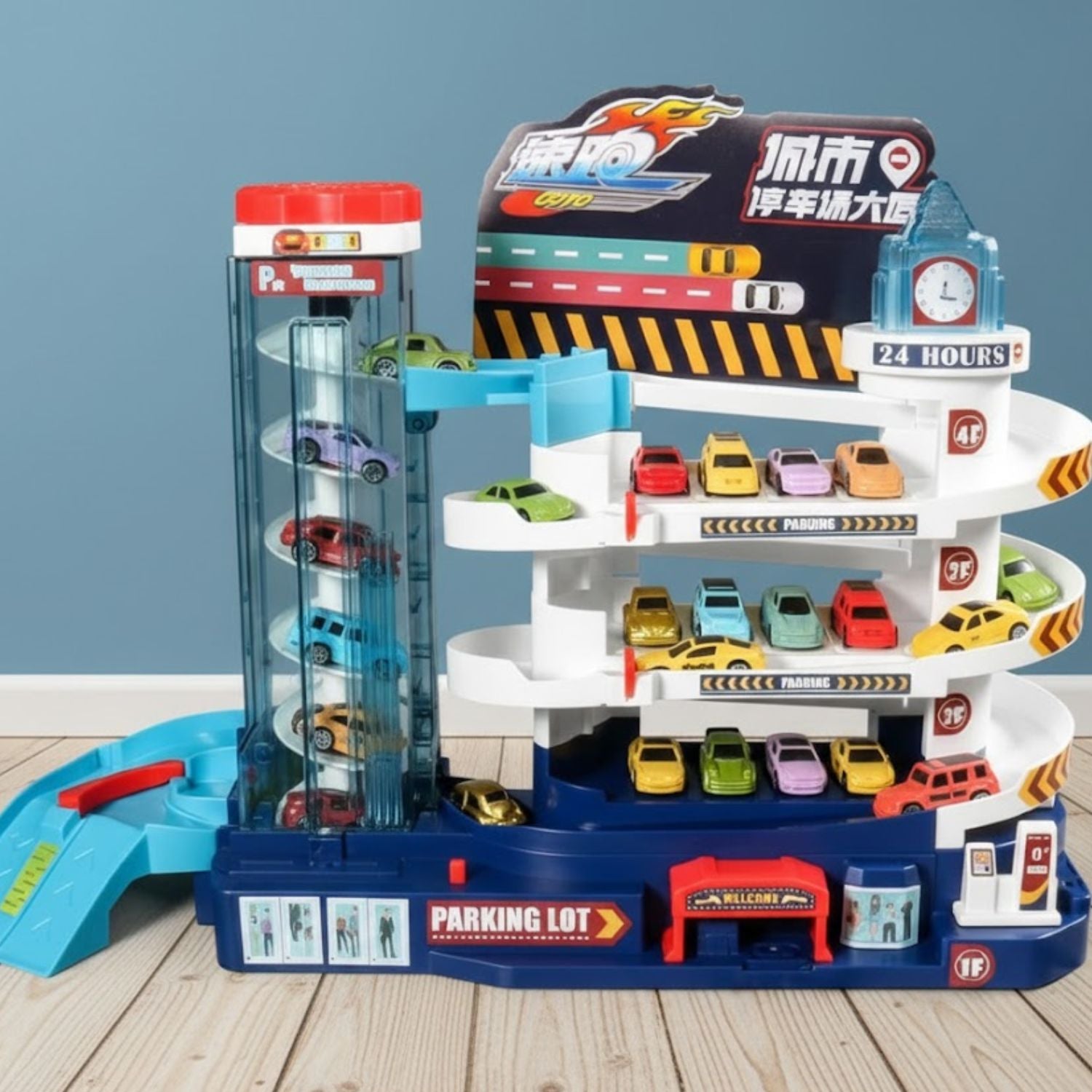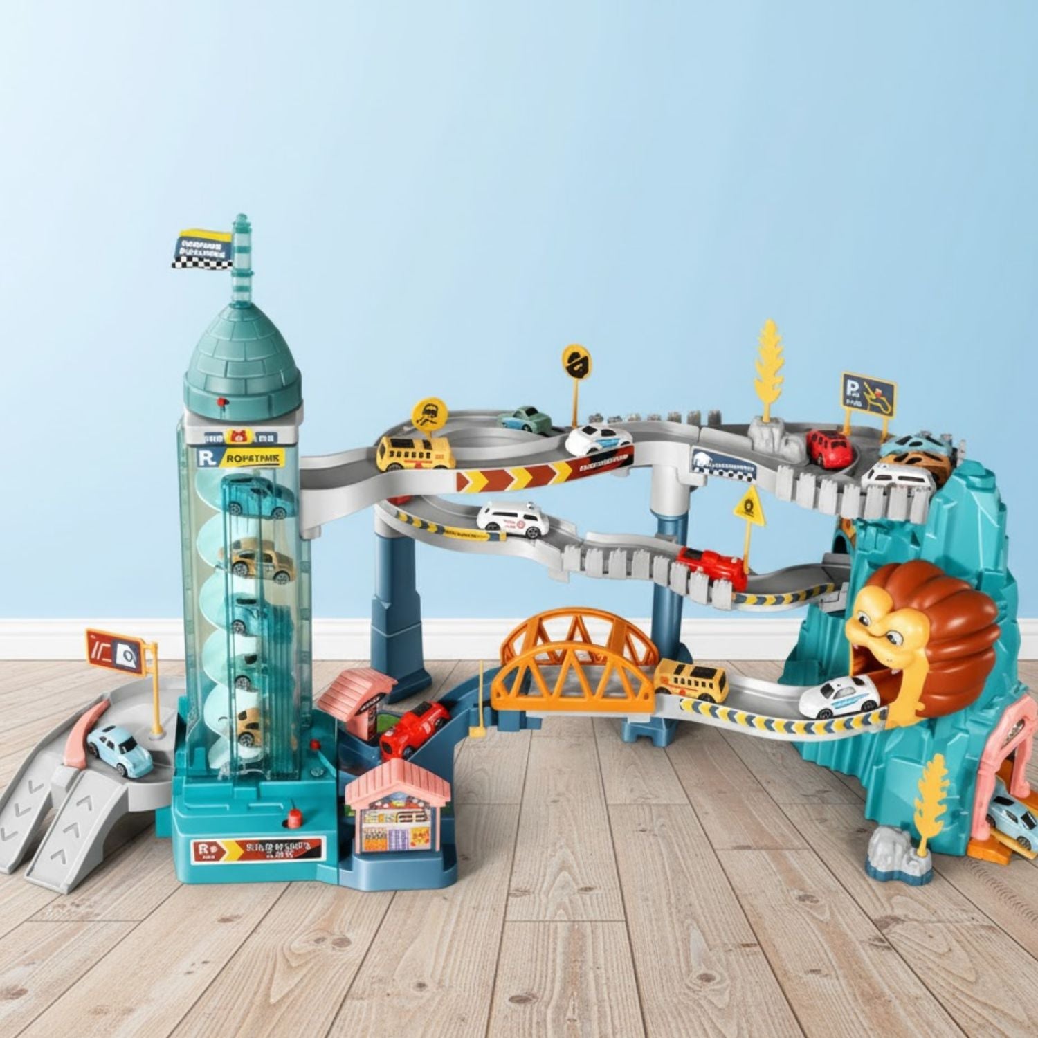 Avec son concept circuit + parking à 4 niveaux , votre enfant imagine, construit et résout des défis, tout en laissant libre cours à son imagination débordante.
