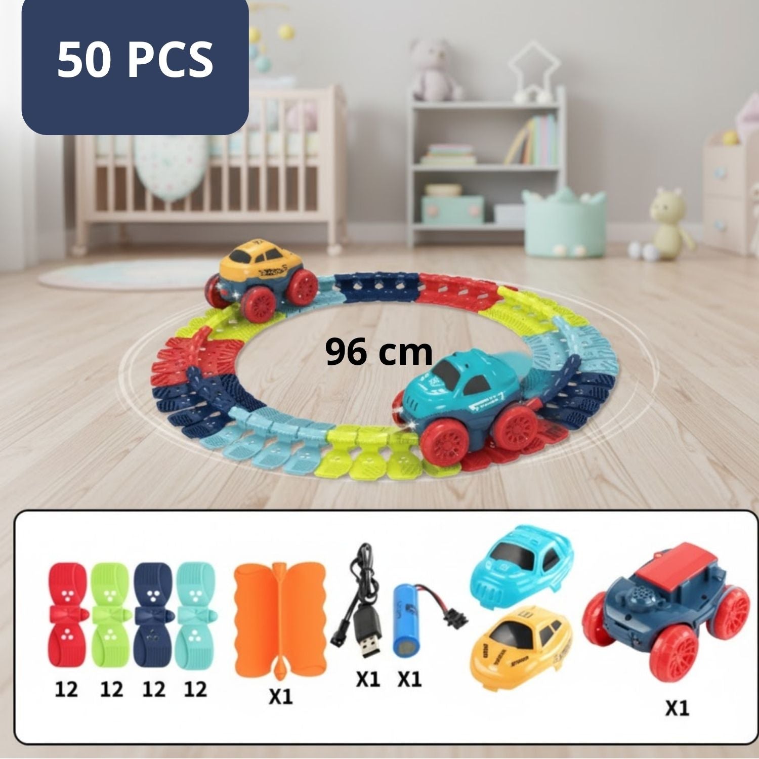 Les voitures LED multicolores ajoutent une touche d'émerveillement au circuit. Elles illuminent chaque virage et ajoutent un effet magique, captivant l’attention des petits pilotes pour des heures de jeu sans interruption. L’effet "wow" est garanti à chaque course !