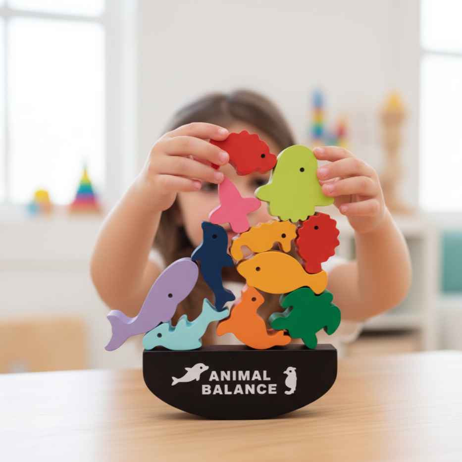 Fini les heures passées devant les tablettes : Jeux en bois de construction de blocs d'équilibre BuildJoy stimule l’attention et la créativité avec des animaux en bois à empiler qui éveillent curiosité et motricité.