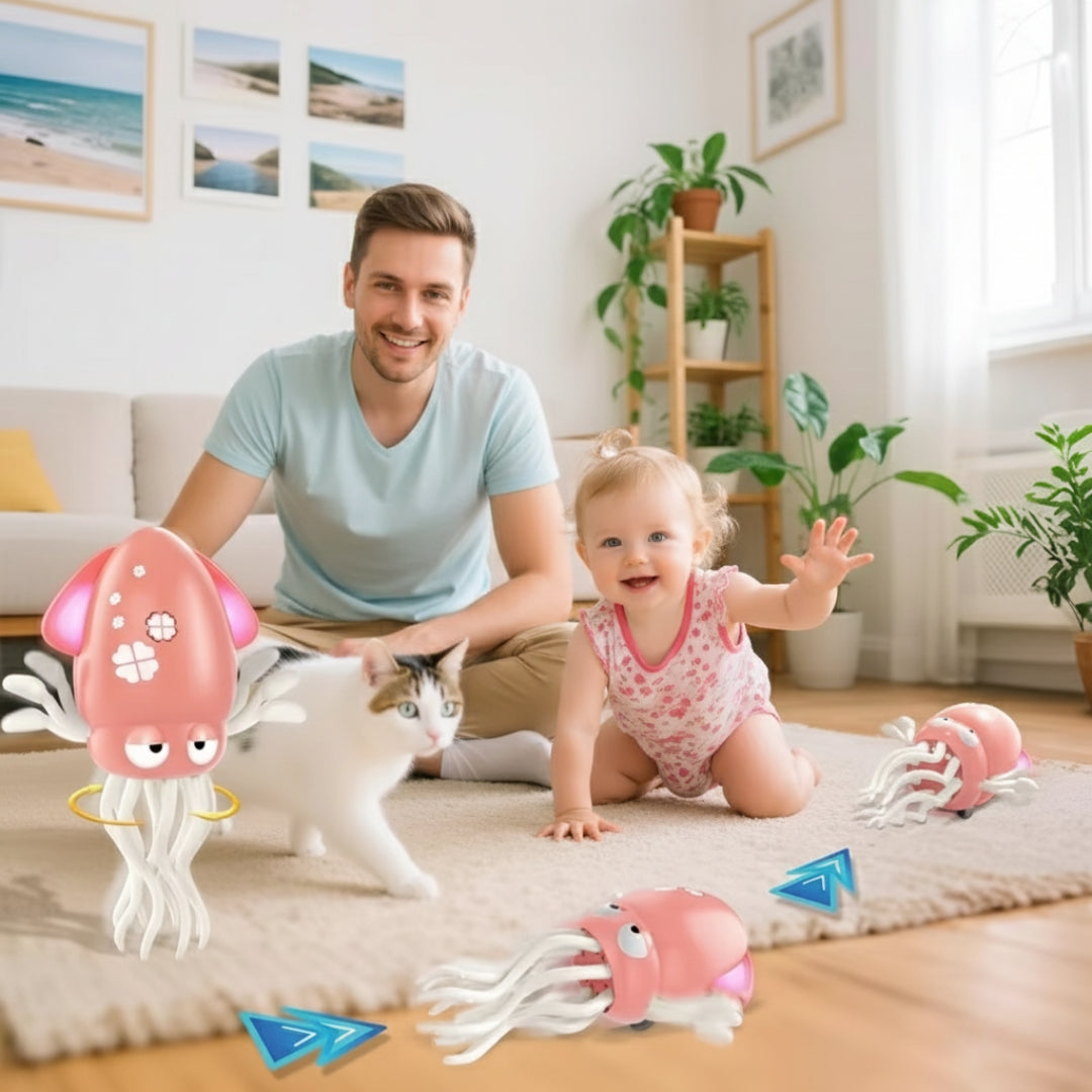 Le Jouet calmar dansant | SquiDance transforme chaque instant en spectacle enchanteur grâce à ses mouvements ondoyants, ses lumières scintillantes et sa musique entraînante. Conçu pour émerveiller les tout-petits, il capte l’attention dès la première seconde.