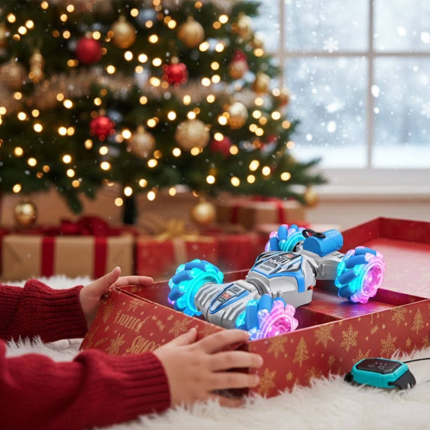 Beaucoup d'enfants abandonnent leurs jouets par manque de réaction ou de contrôle facile. Notre Voiture télécommandée 4WD à spray lumineux – SpinJet, répond instantanément aux gestes grâce à sa montre intelligente et ses roues à 360° .